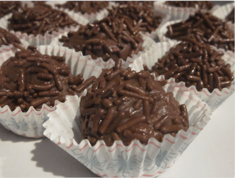 - Place the Brigadeiro’s in baking cups and put in fridge for 30 minutes to solidify.