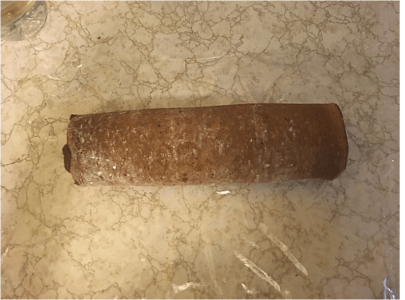 - Remove cake from clingfilm and cut ends so you will have a nice smooth surface to glaze.
