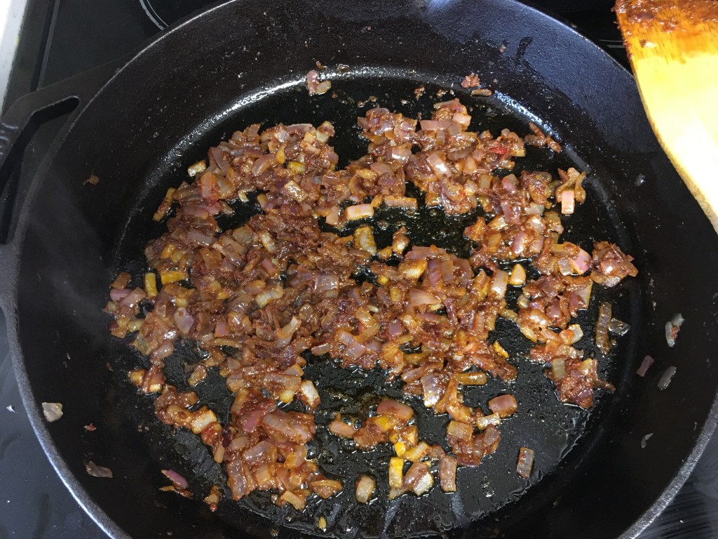 - Heat the butter in a large, wide pan and then add the onion and cook until translucent.