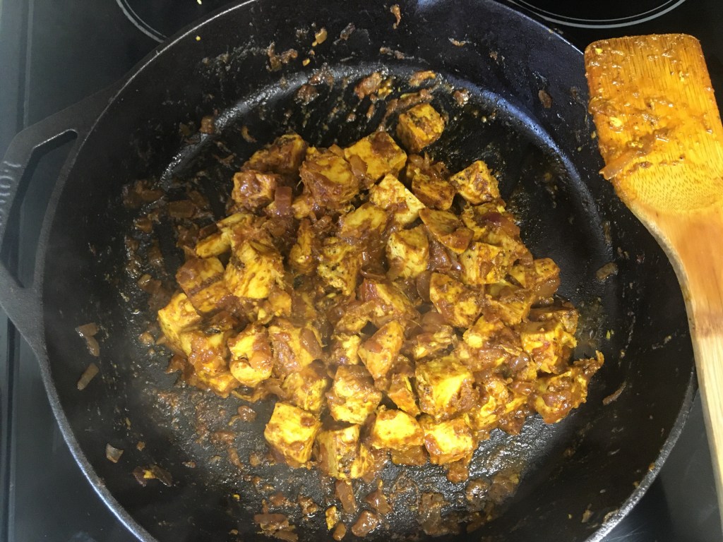 - Add the curry paste and tomato paste, stir and cook for 3 minutes.