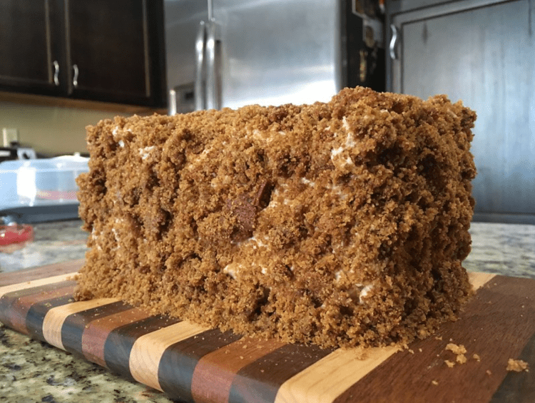 - Slice each cake in half so that you have 6 thin slices of cake.