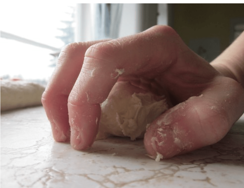 - Drag the dough in a small circular motion using a cupped hand until dough is firm and round.