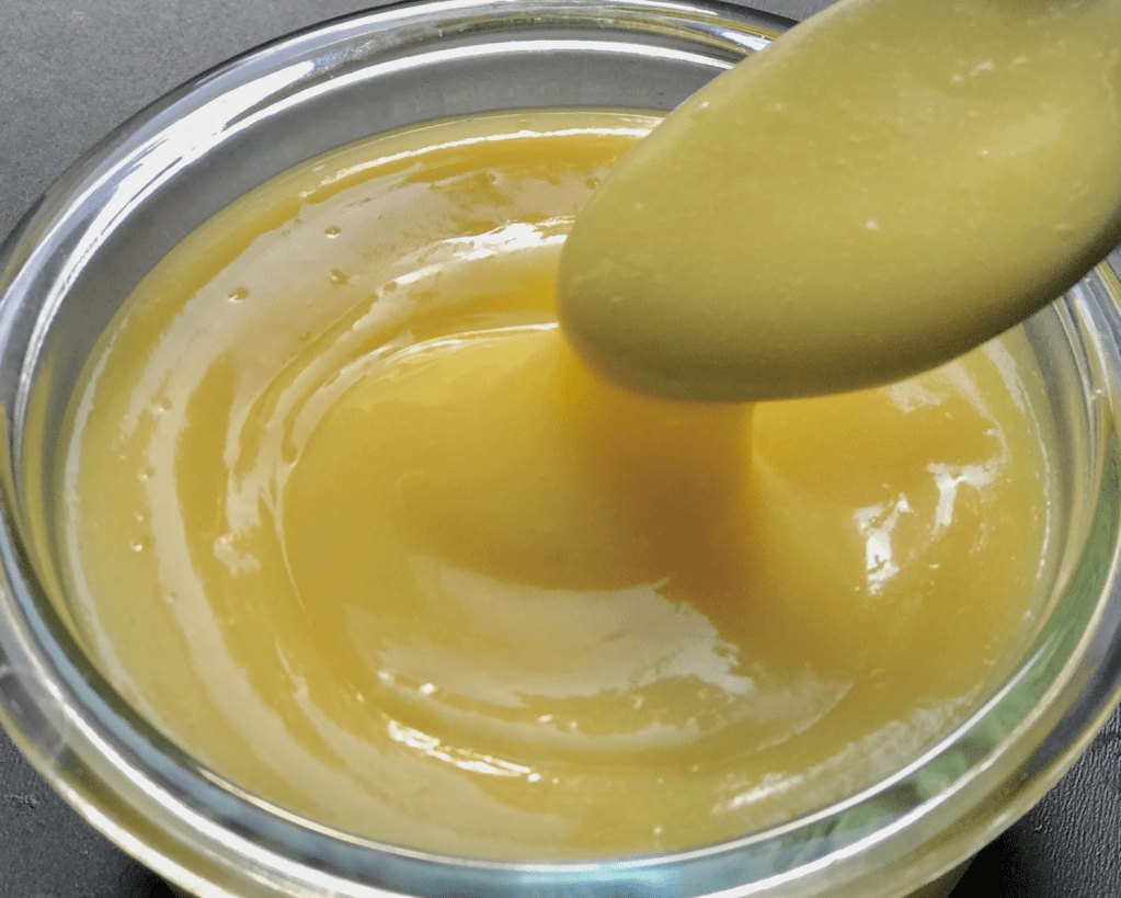- It’s done when the mixture is thick enough to coat the back of a spoon.