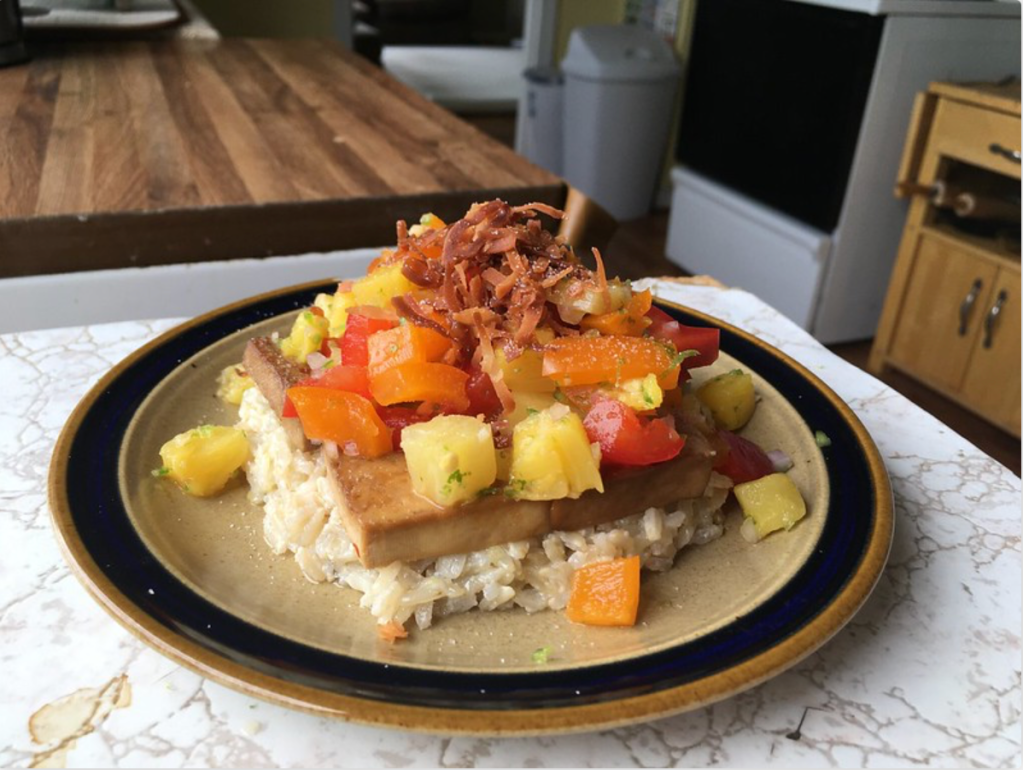 MAIN COURSE Ginger Meatballs Longevity Noodles Coconut Curry Chicken Tacos Manicotti Thai Curry Risotto Curried Butter Chicken Ombré Gratin Turkey Pot Pie Curried Crab Cakes Curry Chicken Pot Pie Vegan Mac and Cheese Pineapple Salsa and Coco Rice Thai Swimming Rama Beef Wellington Thai Turkey Burgers Enchiladas Ratatouille Thai Chicken Lettuce Wraps Mofongo Banh Mi