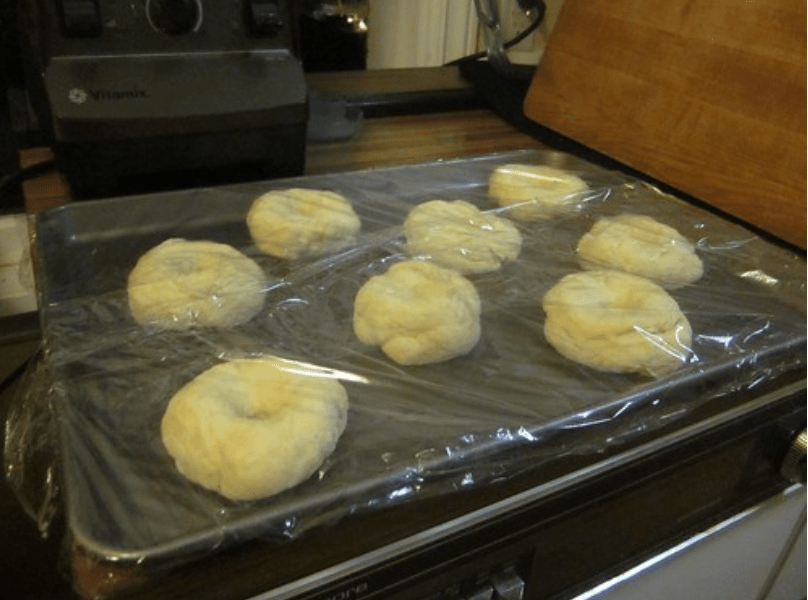 - With an inch or so of space between one another (use two pans, if you need to) lay out the bagels.
