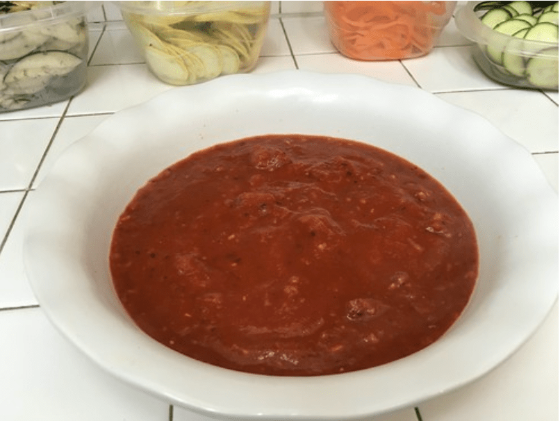 - Prepare red sauce. I used a jar of marinara sauce, but added in a bunch of garlic, onion and spices to give it some real flavor.