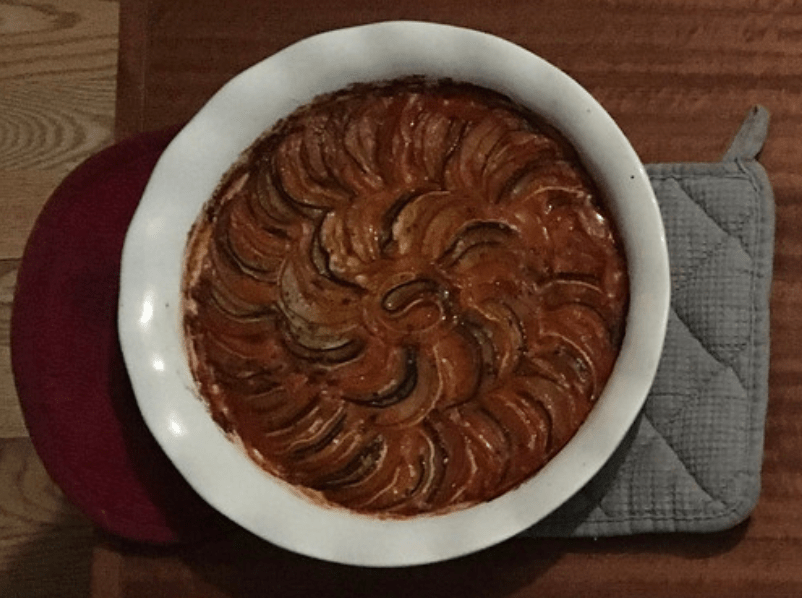I served this with a beef wellington, but I read a lot about putting it with creamy polenta, risotto, couscous, a leg of lamb and so on. I almost wonder if you could put a really thin slice of meat into the mix as you are layering it. That might be delicious!