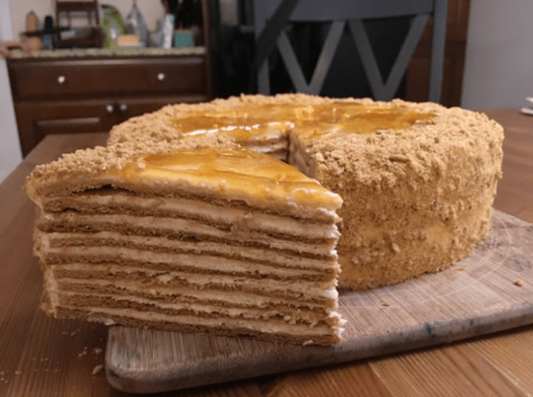 - Mix the apricot jam and honey in a bowl and then spread on top of the cake.