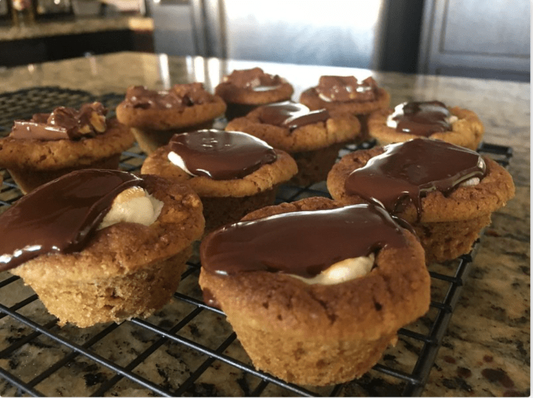 - Remove from the oven and gently press a half marshmallow, sticky side down into each cookie and let cool completely.